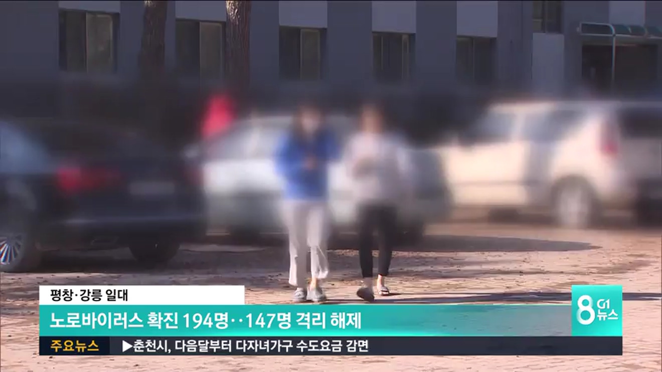 질병관리본부에 따르면, 어제(12일) 평창과 강릉에서 추가로 17명이 노로바이러스 확진자로 확인돼, 전체 확진자는 194명으로 늘었고, 이중 147명은 격리 해제됐습니다.