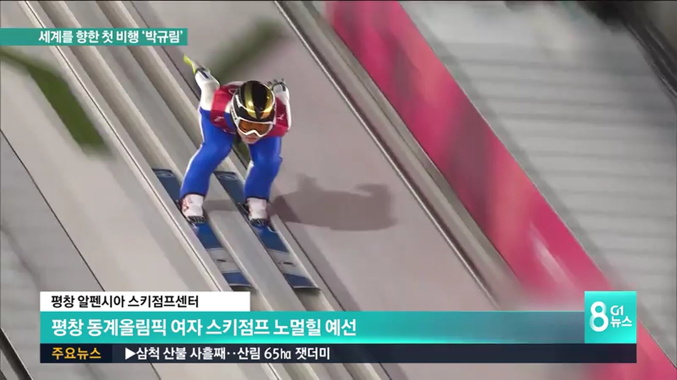 여) 여자 스키점프 선수로는 유일하게 출전한 평창 상지대관령고 출신의 박규림 선수가 세계를 향한 힘찬 발걸음을 내디뎠습니다.