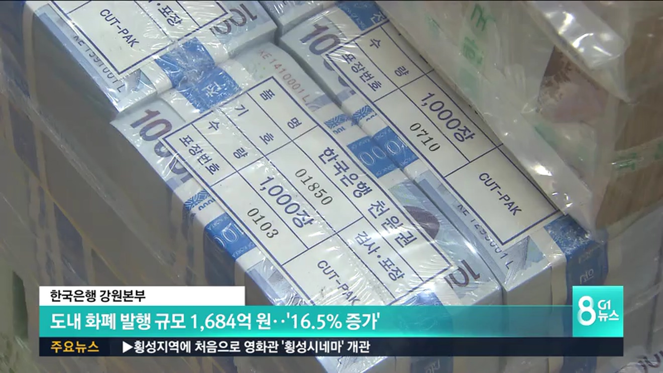 도내 화폐 발행 규모 1,684억 원‥'16.5% 증가'