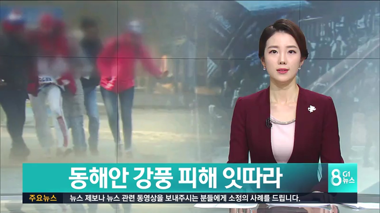 "오늘 강릉을 비롯한 영동지역 6개 시군에는 강풍주의보가 발효됐습니다. 강릉의 경우 순간최대 풍속이 초속 20m를 넘었습니다."