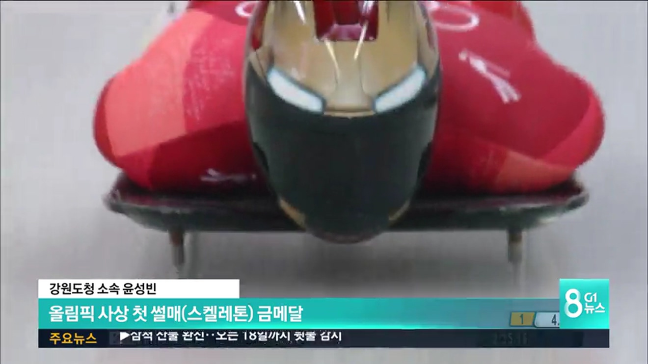 강원도청 소속 윤성빈 선수가 대한민국 올림픽 사상 첫 금메달을 획득했습니다.