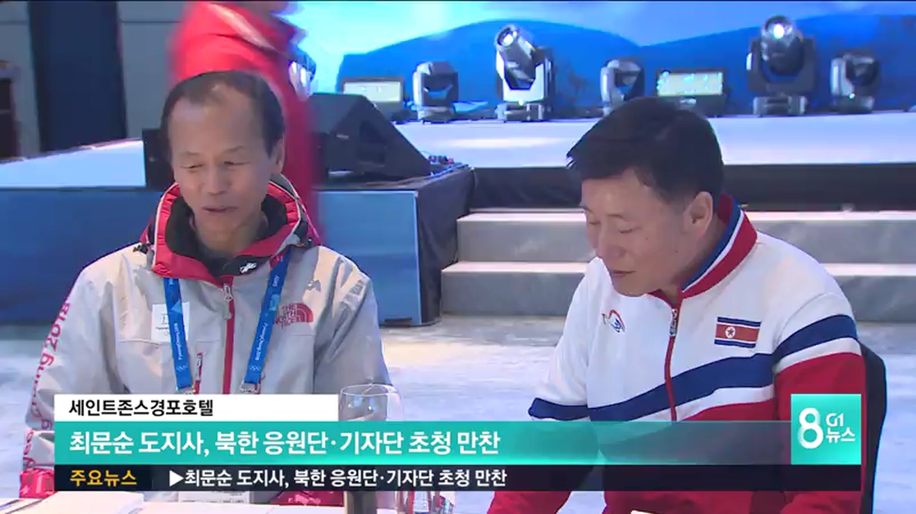 최문순 도지사가 평창 동계올림픽에 참가한 북한 선수와 남북단일팀을 응원하기 위해 강원도에 온 북한응원단을 초청한 만찬 행사를 열었습니다.