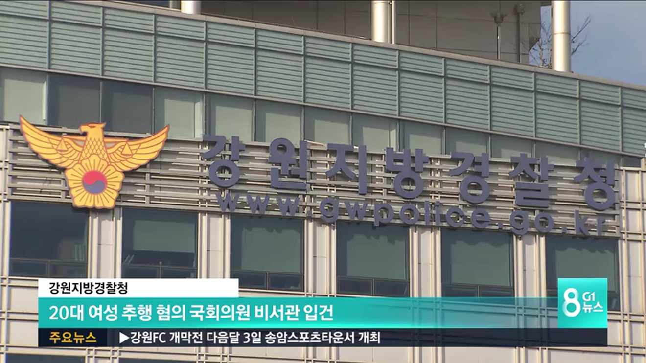 경찰에 따르면, 20대 여성 B씨는 오늘 오전 3시쯤 평창군 대관령면의 한 술집에서 옆자리에 있던 도내 모 국회의원 비서관 A씨에게 추행을 당했다며 경찰에 신고했고, A씨는 출동한 경찰관에 의해 인근 파출소로 연행돼 조사를 받았습니다.