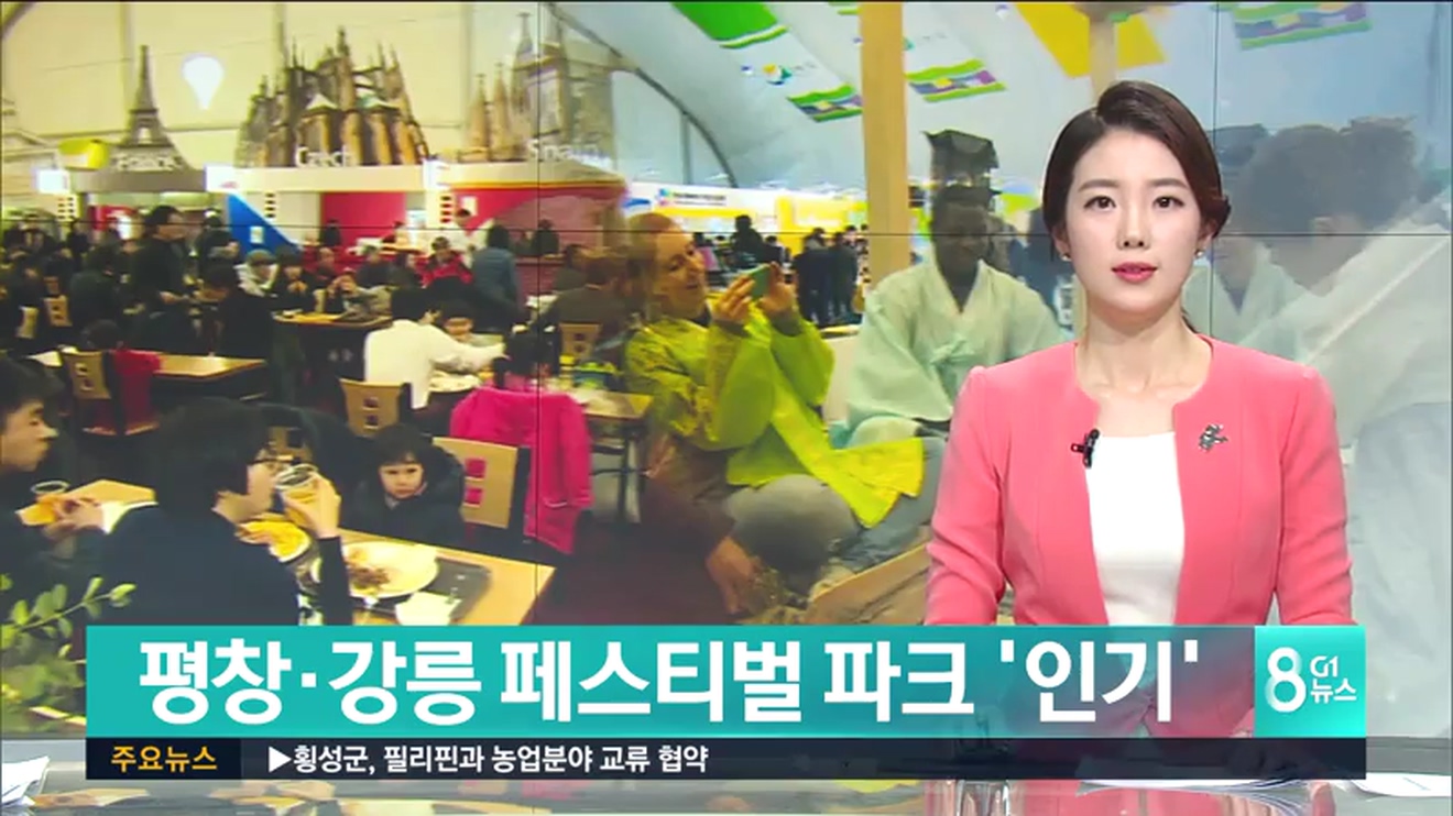 "평창2018 페스티벌 파크는 평창과 강릉에 위치해 있고 오는 3월까지 운영돼, 전세계에 강원도와 우리나라의 맛과 멋을 알릴 예정입니다. G1뉴스 김기태입니다."