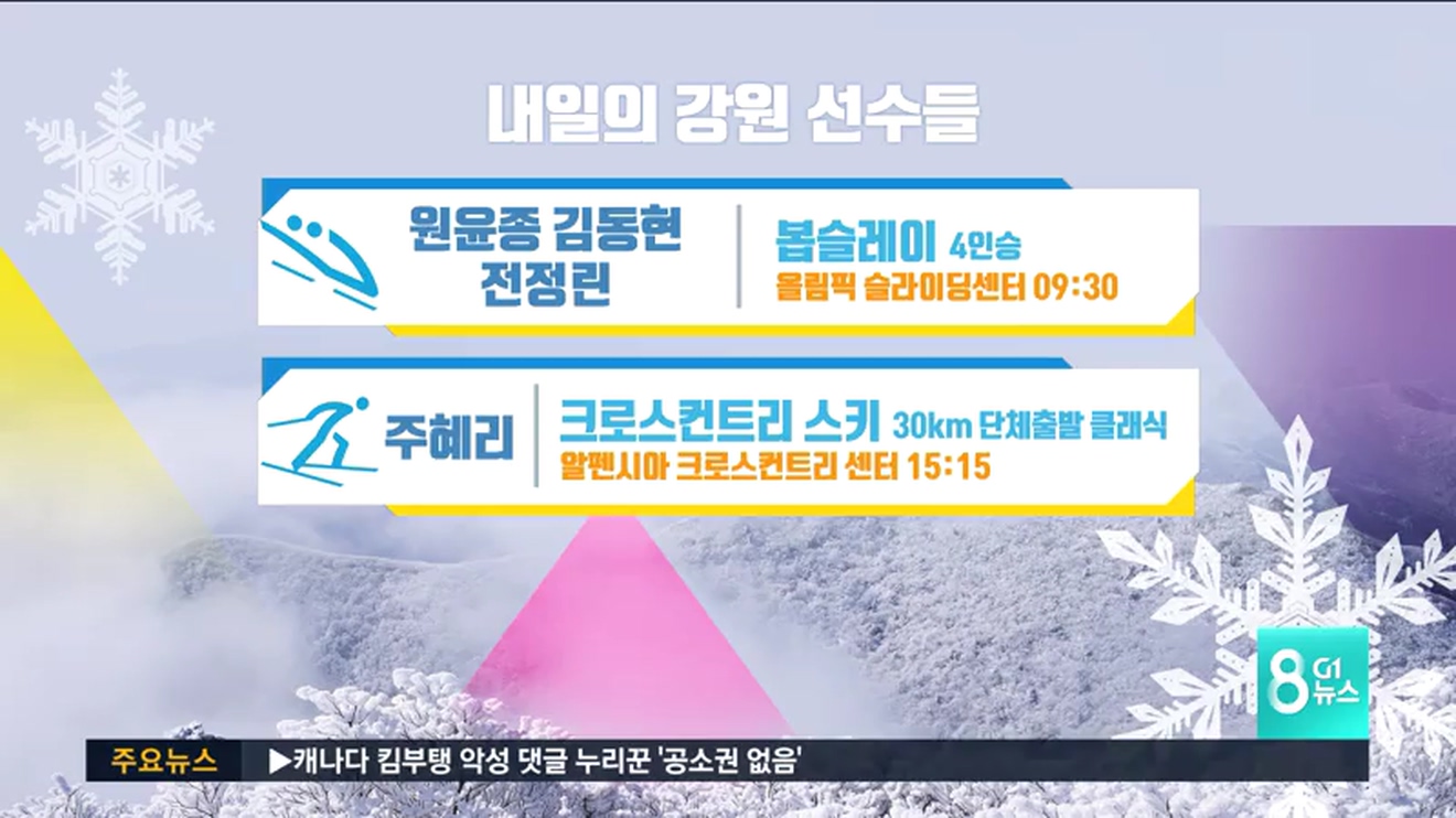 이어서 강원도 출신 선수들의 내일 주요 경기 일정을 전해드립니다.