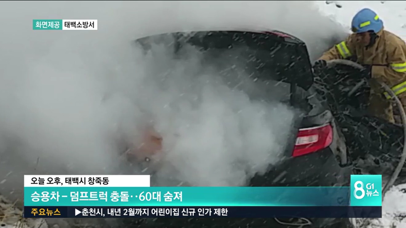 태백서 승용차-덤프트럭 충돌‥60대 숨져