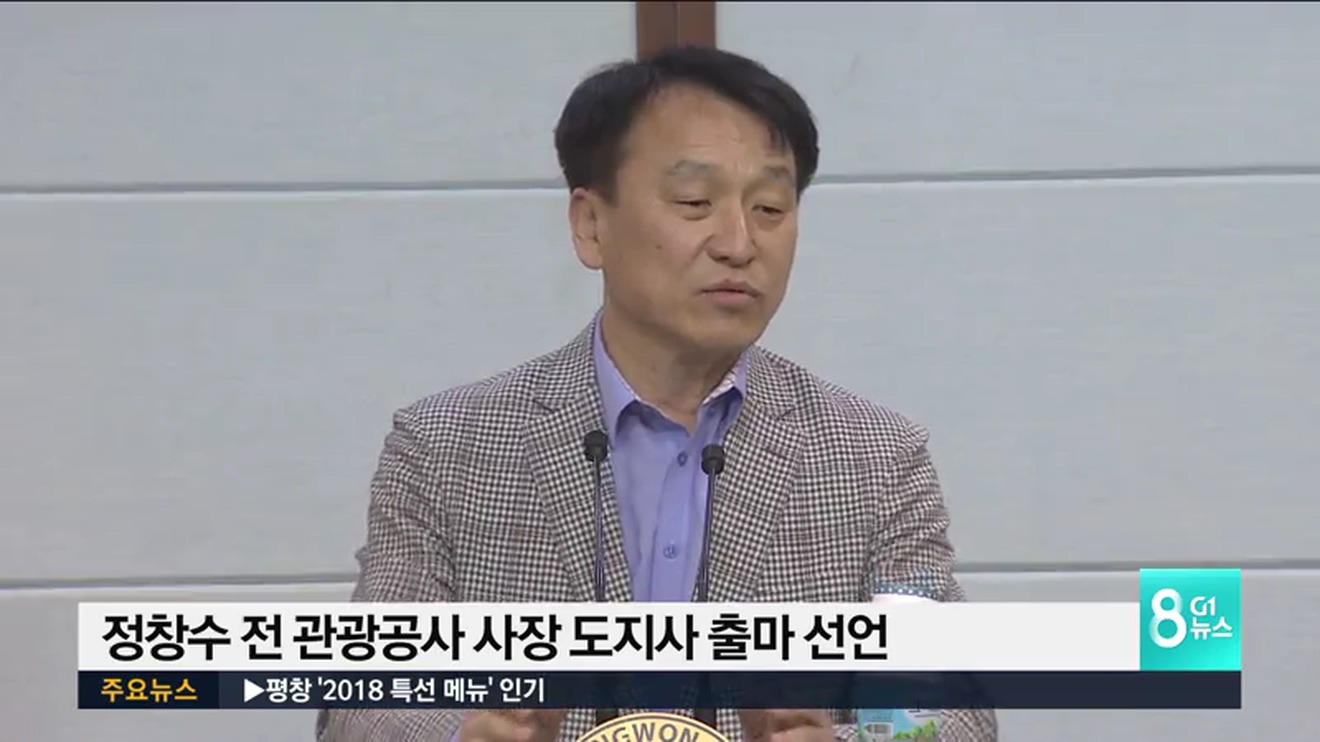 지난달 28일 강원도지사 예비후보 등록을 마친 정창수 전 한국관광공사 사장이 오늘 기자회견을 열고, 도지사 출마를 공식 선언했습니다.