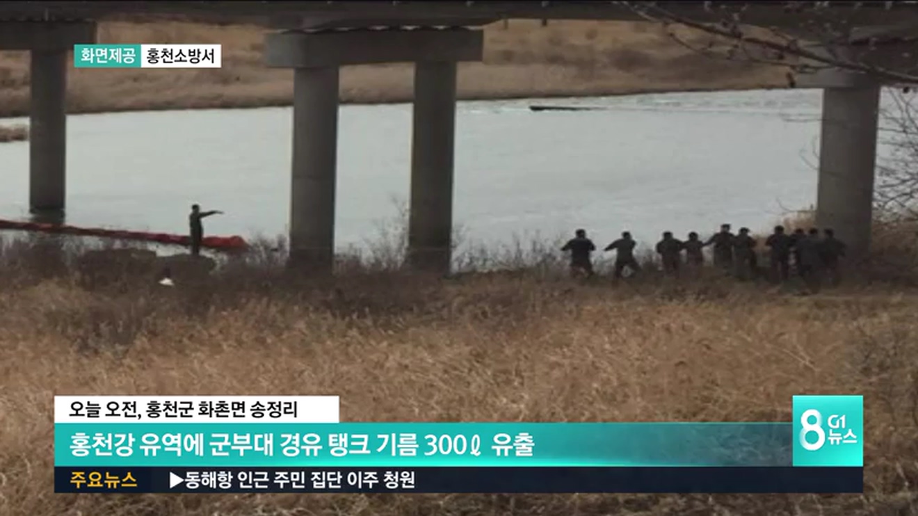 오늘 오전 7시 40분쯤, 홍천군 화촌면 송정리 홍천강 유역에서 경유 300L가 유출되는 사고가 발생했습니다.