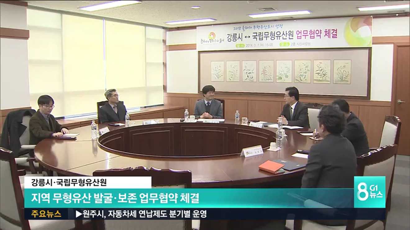 '올해의 무형유산도시'로 선정된 강릉시가 오늘 시청에서 문화재청 국립무형유산원과 업무협약을 체결했습니다.