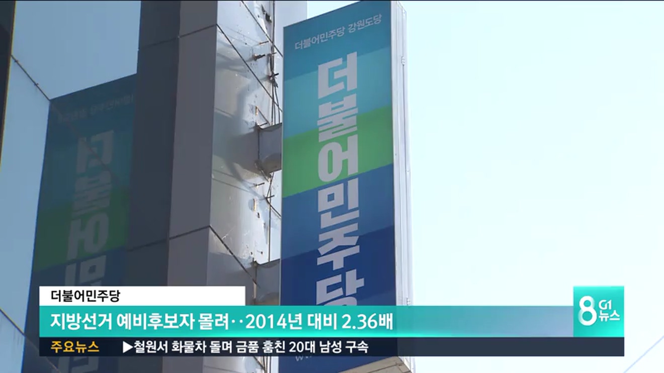 민주당 강원도당은 지방선거 예비후보자 1,2차 모집 결과 모두 245명이 신청해, 지난 2014년 지방선거 104명 보다 2.36배가 증가했다고 밝혔습니다.