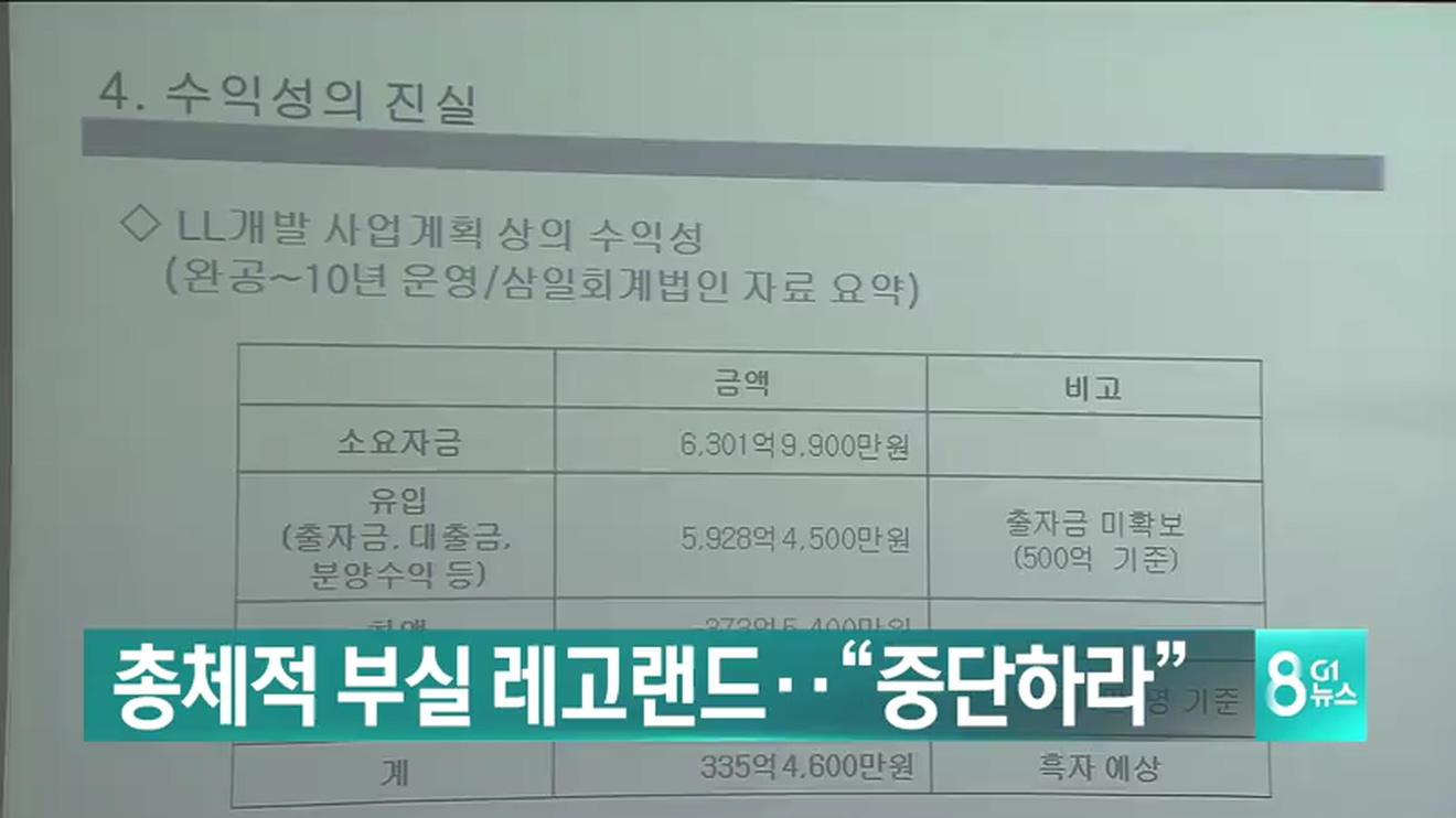 춘천시민사회단체가 레고랜드 사업 중단을 촉구하고 나섰습니다. 사업이 정상 추진되더라도 적자 운영이 불가피하다고 주장하고 있습니다.