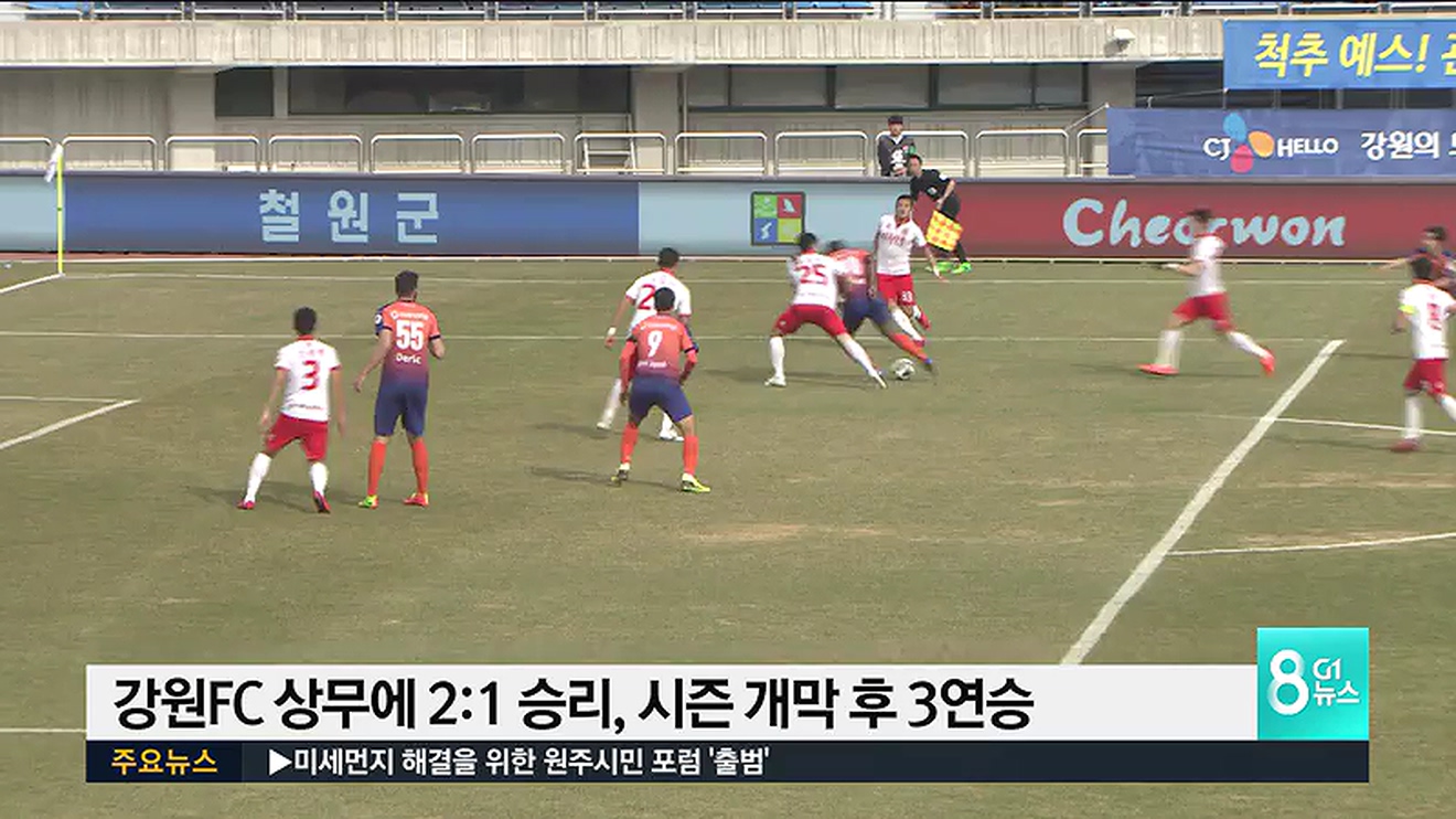 강원FC가 상주 상무를 상대로 벌인 홈경기에서 2대 1로 승리해 3연승을 기록했습니다.