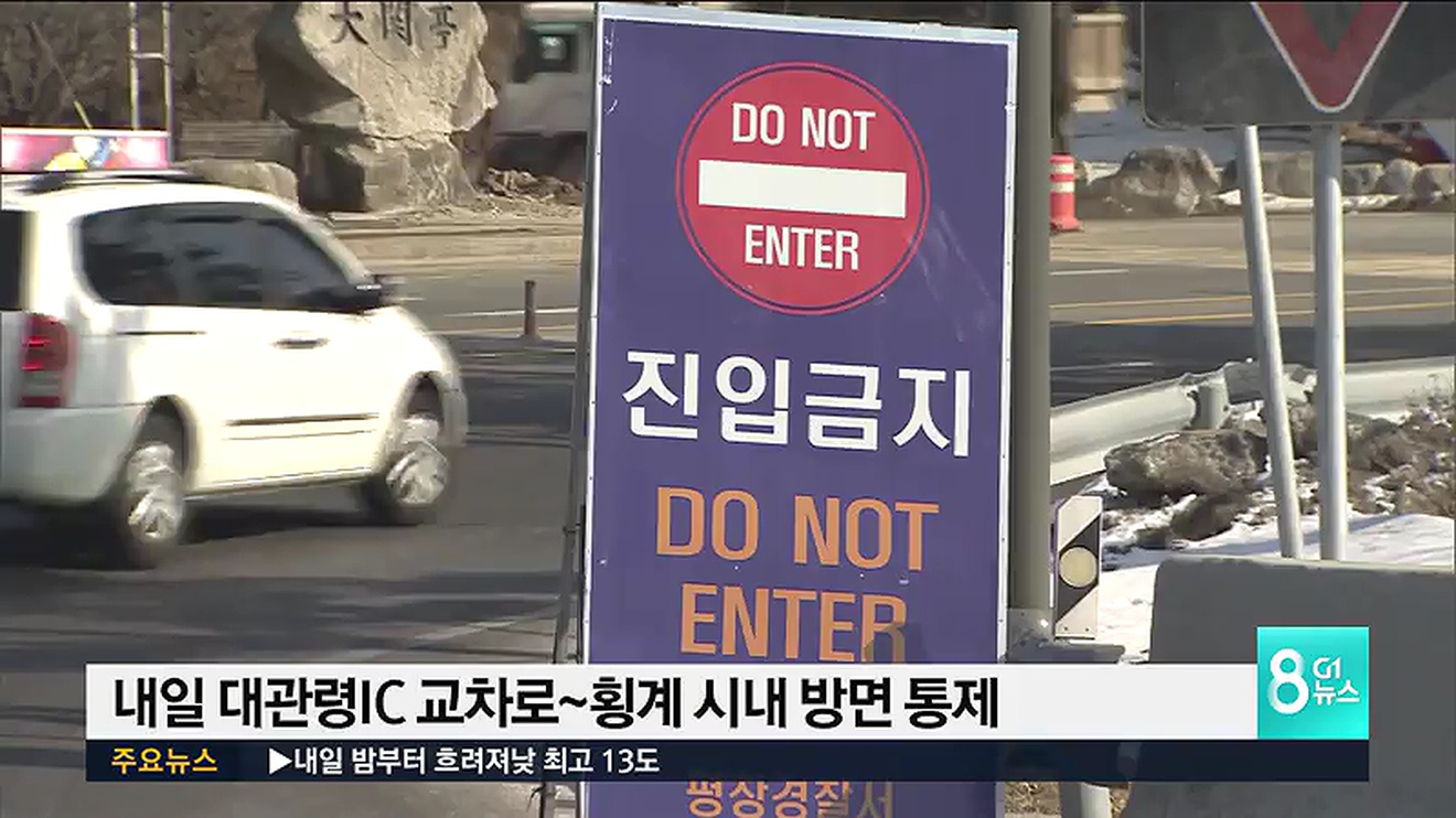 내일 대관령IC 교차로~ 횡계 시내 방면 통제