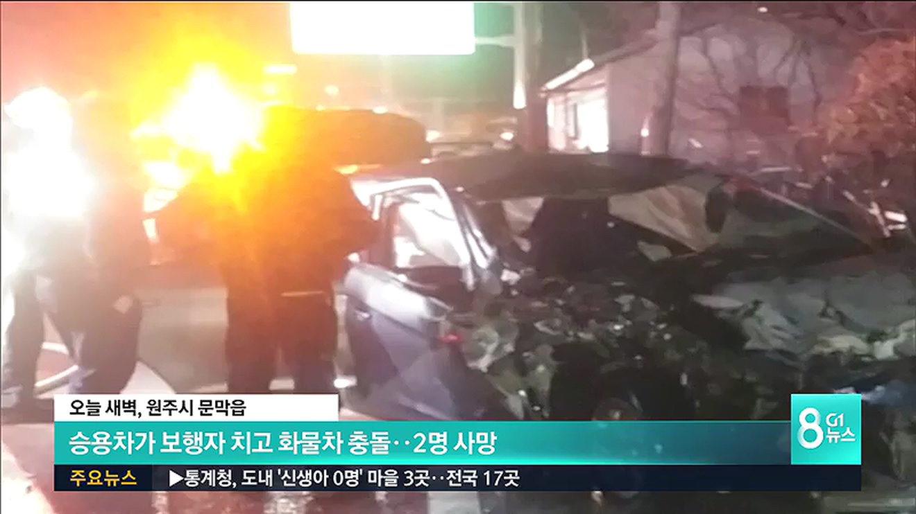 원주서 승용차가 보행자 치고 화물차 충돌..2명 사망