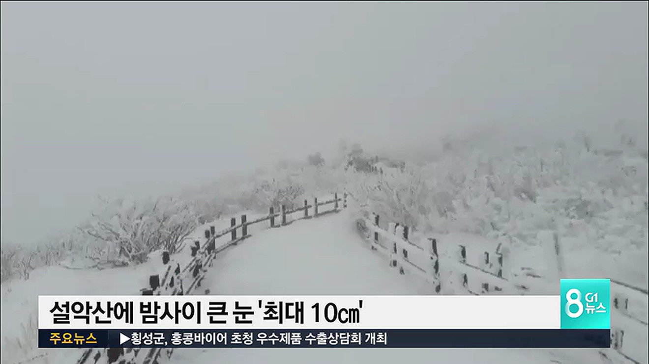 설악산국립공원사무소에 따르면, 어젯 밤 설악산 중청 등 고지대 일원에 눈이 10㎝가량 내렸습니다.