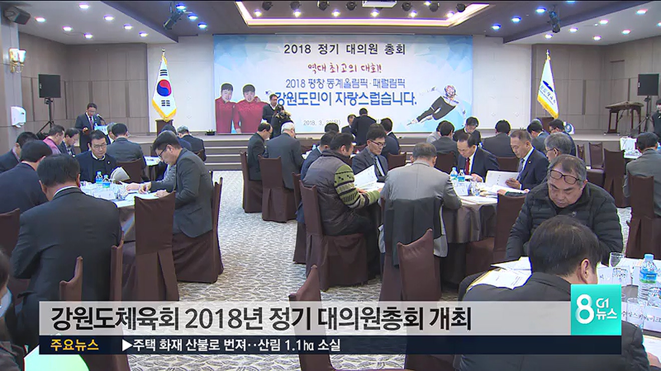 강원도체육회는 오늘(22일) 춘천스카이컨벤션웨딩홀에서 2018년 정기 대의원총회를 개최했습니다.