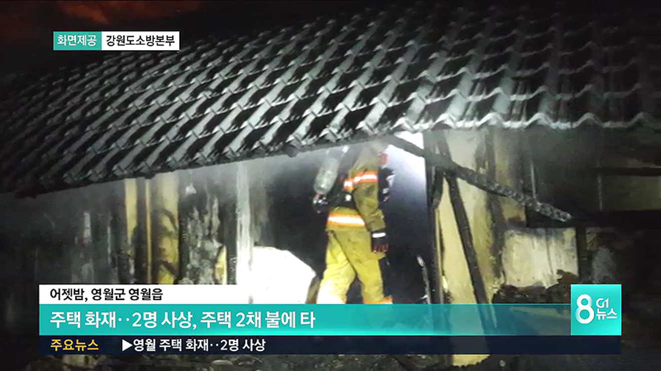 어젯밤 11시 50분쯤, 영월군 영월읍의 한 주택에서 불이 나, 집에 있던 49살 정모씨가 숨지고, 남편 52살 추모씨가 화상을 입어 병원에서 치료를 받고 있습니다.