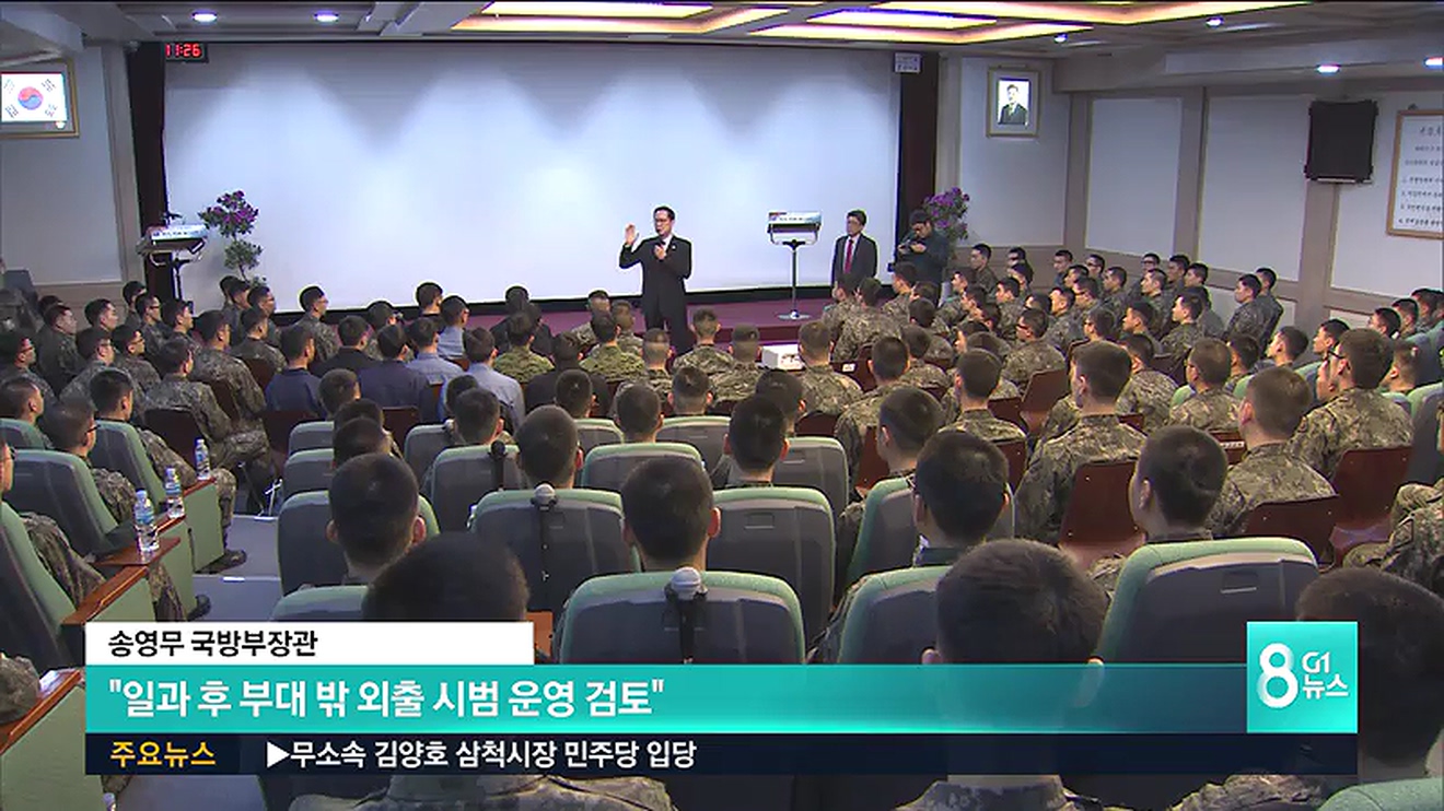송 장관은 병사들의 일과 시간 이외에는 출·퇴근 개념을 적용해 개인 생활을 최대한 보장하고, 일과 후 휴대폰 사용 허용을 검토하겠다고 덧붙였습니다.