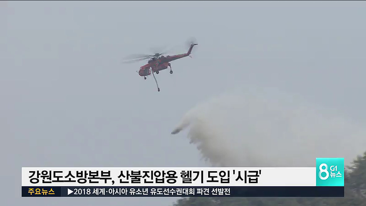 강원도소방본부, 산불진압용 헬기 도입 '시급'