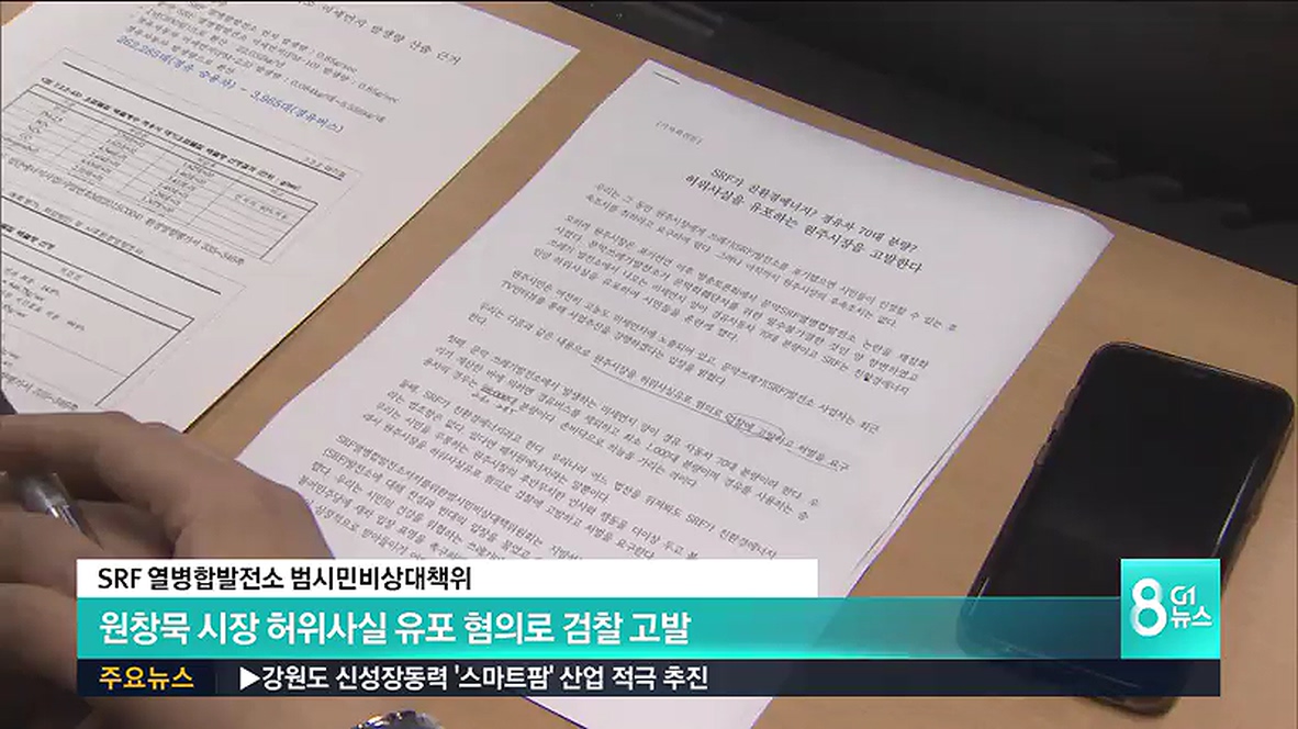 원주 SRF 열병합발전소 범시민대책위는 원창묵 시장이 발전소 가동에 따른 미세먼지 배출량에 대해 허위사실을 유포하고 있다며 검찰에 고발했습니다.