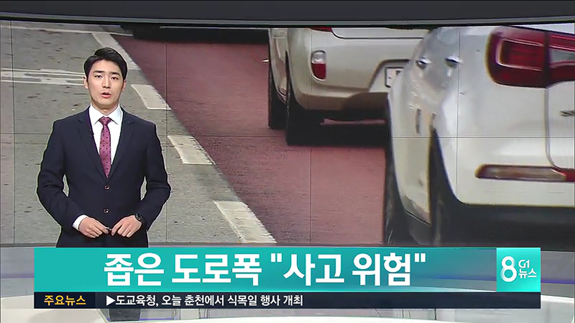 그런데, 원주의 한 도로는 오히려 차선 폭이 줄어들어, 운전자들이 위험에 내몰리고 있습니다.
