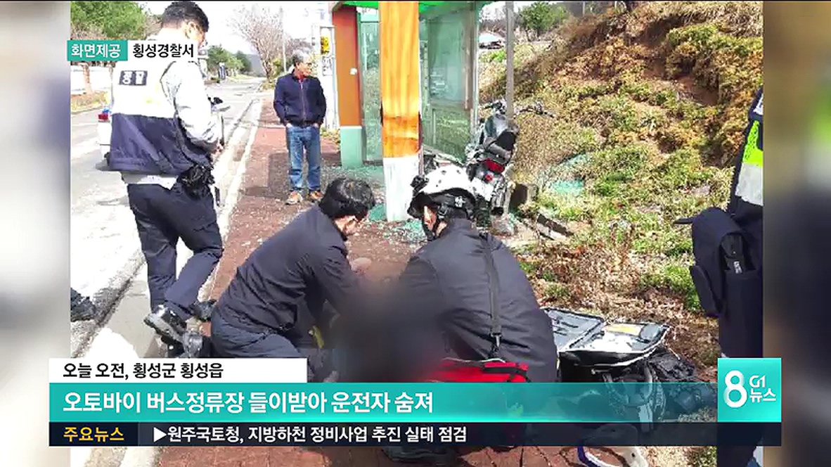 횡성서 오토바이 버스정류장 들아받아 운전자 숨져