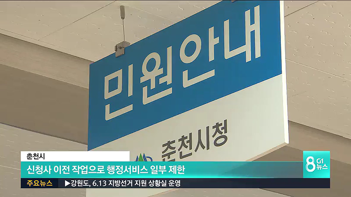 춘천시는 신청사 이전을 위한 통합전산 시스템 사전 구축 작업이 진행되면서, 시스템 모의 훈련 기간인 오는 13일부터 15일, 실제 이전 작업이 진행되는 20일부터 22일까지 모두 6일 동안 일부 행정서비스가 중지된다고 밝혔습니다.