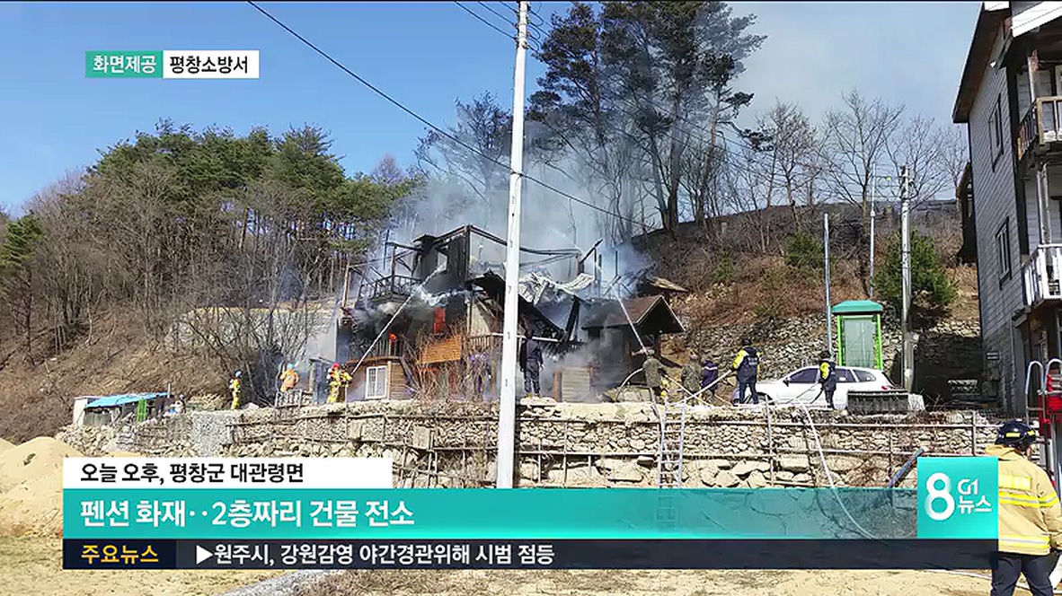 오늘 오후 2시쯤 평창군 대관령면의 한 펜션에서 불이 나, 2시간여 만에 꺼졌습니다.