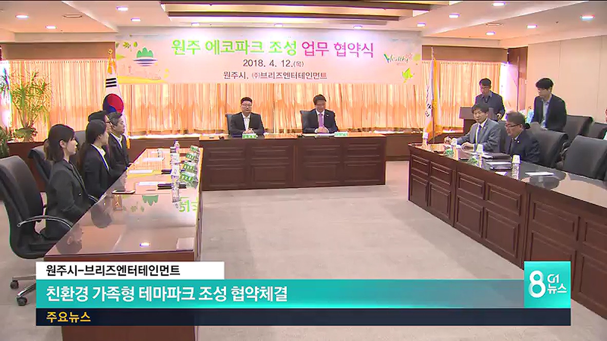 원주시는 오늘 원주시청 투자상담실에서 브리즈엔터테인먼트와 업무협약을 맺고, 내년까지 문막읍 궁촌리 일대 3만 5천㎡ 부지에 친환경 가족형 테마파크를 조성하기로 했습니다.