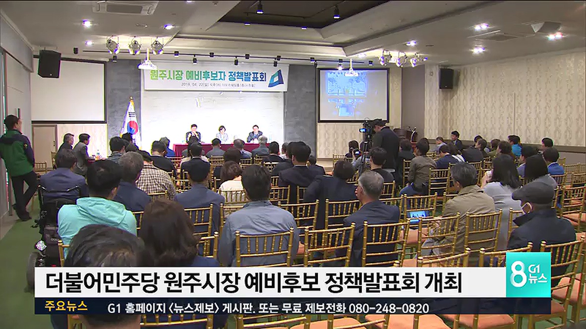 6.13 지방선거에 나서는 더불어민주당 원주시장 예비후보들 간의 정책발표회가 오늘 원주 아모르컨벤션웨딩홀에서 열렸습니다.