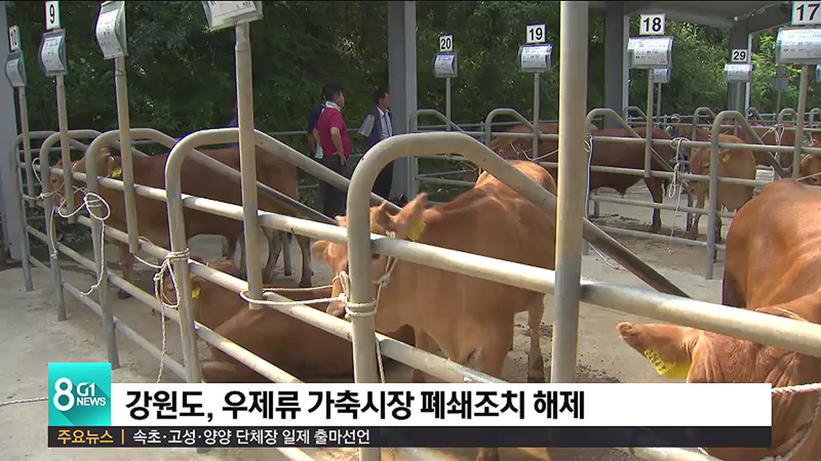 강원도는 지난달 경기 김포에서 구제역이 발생함에 따라 취해졌던 도내 우제류 가축시장 8곳의 폐쇄 조치를 모두 해제하고, 전면 재개장한다고 밝혔습니다.