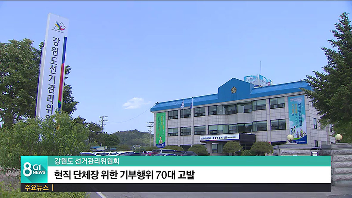 강원도 선거관리위원회는 현직 단체장을 위해 선거구민에게 기부행위를 한 72살 김모씨를 춘천지검 속초지청에 고발했습니다.