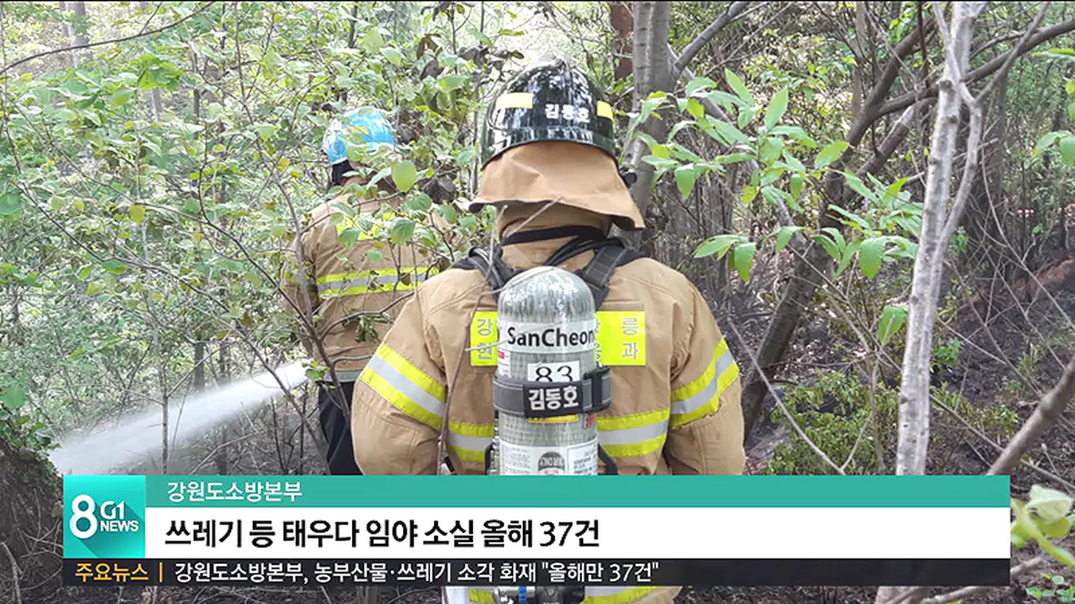 지난 13일에도 정선군 북평면에서 건초를 태우던 중 불씨가 날려 인근 풀숲을 태우는 등 올해에만 농업 부산물이나 쓰레기 소각으로 37건의 임야 화재가 발생했다고 밝혔습니다.