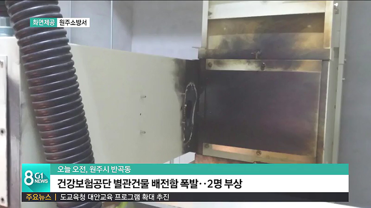 오늘 오전 10시 40분쯤 원주시 반곡동 건강보험공단 별관건물 2층에서 배전함 폭발 사고가 발생했습니다.