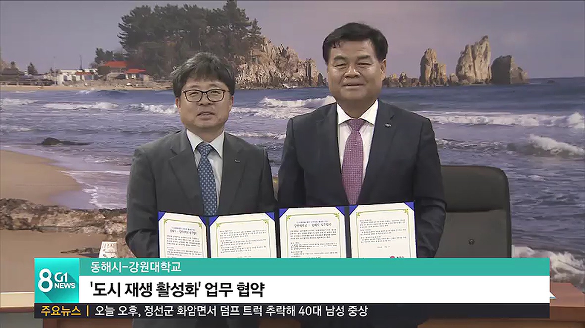 오늘 협약에 따라 동해시는 지역 자원과 정보를 공유하고, 강원대학교는 정책 자문단을 따로 구성해 관·학 협력을 통한 지속 가능한 도시 재생 사업을 발굴해 나갈 계획입니다.