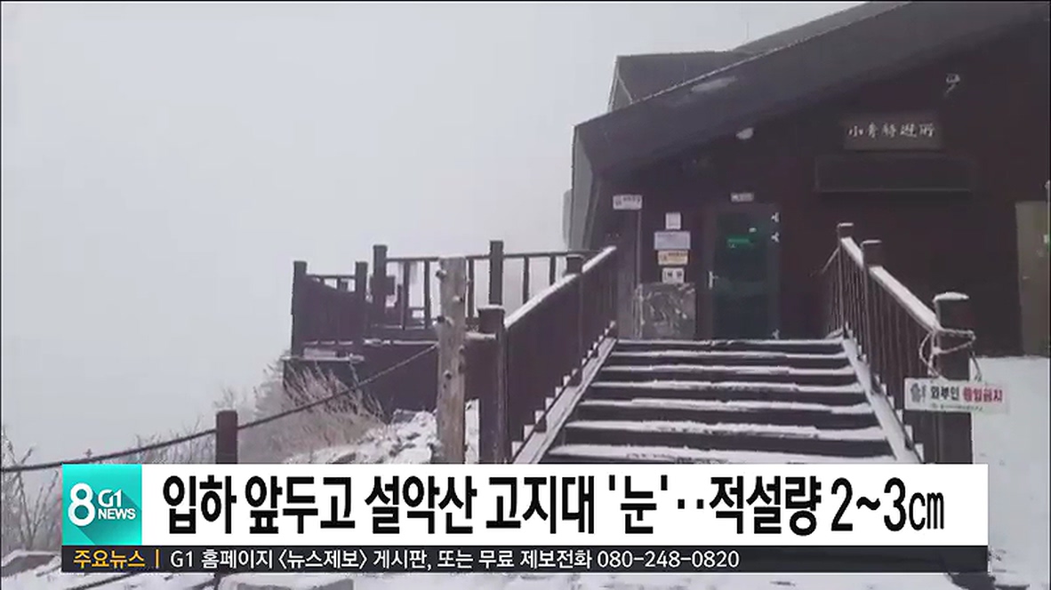 설악산국립공원사무소는 오늘 새벽, 대청봉과 중청, 소청 등 고지대에 2~3cm의 눈이 내렸다고 밝혔습니다.