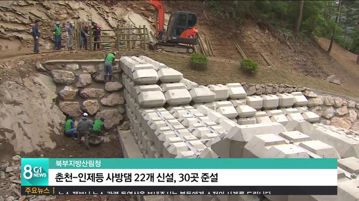 북부지방산림청은 올해 57억 원을 투입해 춘천과 홍천, 인제 등 22곳에 토석류 발생과 유출을 막을 수 있는 사방댐을 신설한다고 밝혔습니다.