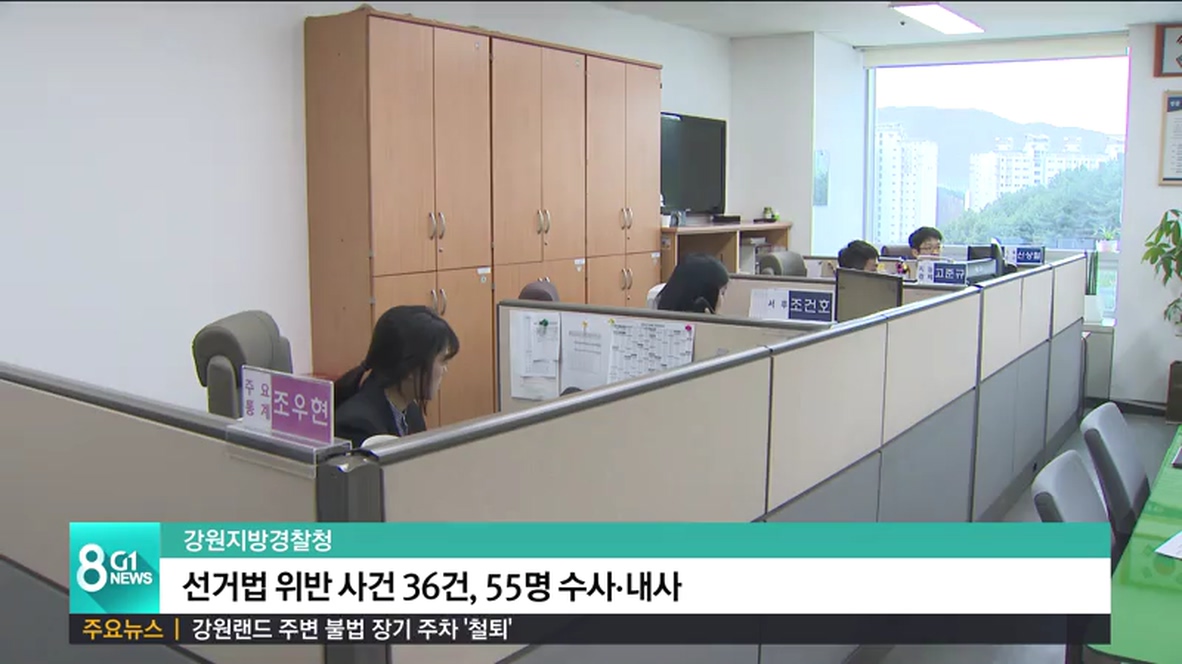 강원지방경찰청에 따르면, 현재 도내에선 모두 36건의 공직선거법 위반 사건이 접수돼, 55명에 대한 수사와 내사를 벌이고 있습니다.