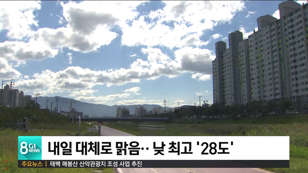 내일 강원지역은 대체로 맑은 가운데, 낮엔 초여름 날씨를 보이겠습니다.