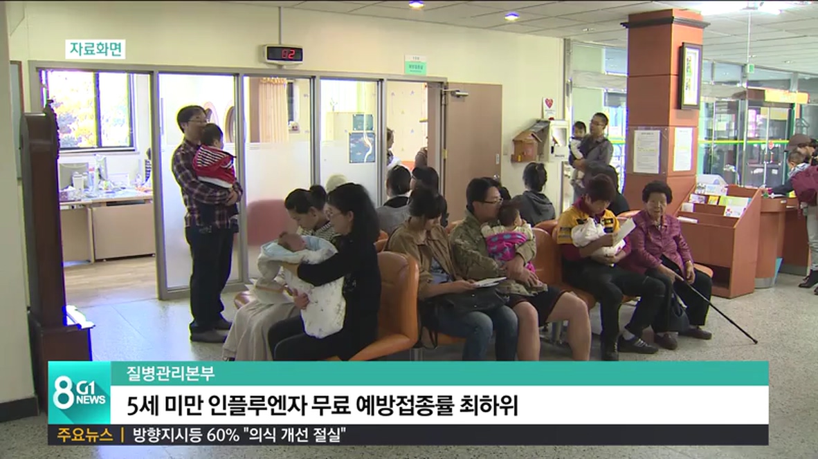 질병관리본부에 따르면, 지난해부터 최근까지 조사한 도내 만 5세 미만 어린이 인플루엔자 무료 예방 접종률은 74.9%로, 전남에 이어 전국에서 가장 낮았습니다.