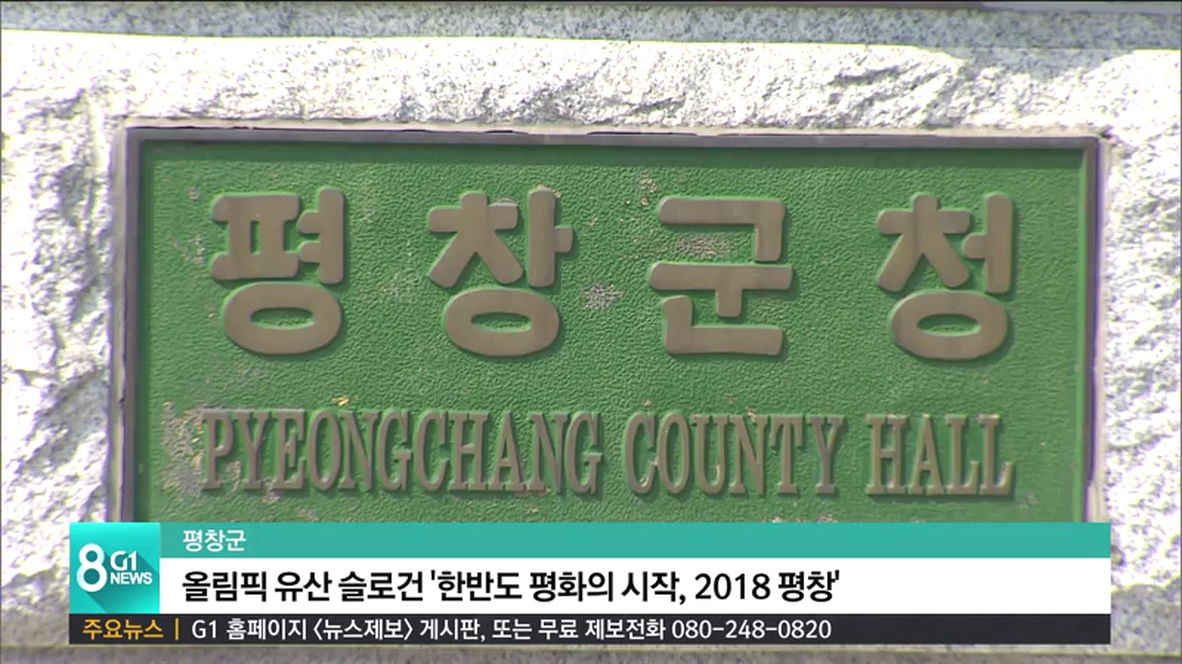평창군은 동계올림픽을 계기로 남북 관계가 개선된 것을 반영해, 올림픽 유산 슬로건을 '한반도 평화의 시작, 2018 평창'으로 채택했습니다.