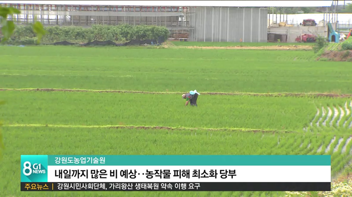강원도농업기술원은 지역 농업기술센터에 집중호우 이후 벼와 밭작물, 과수 등 종류별 농작물 관리 요령을 전달하고, 지역 농업인들에게 비 피해가 없도록 주의를 당부했습니다.
