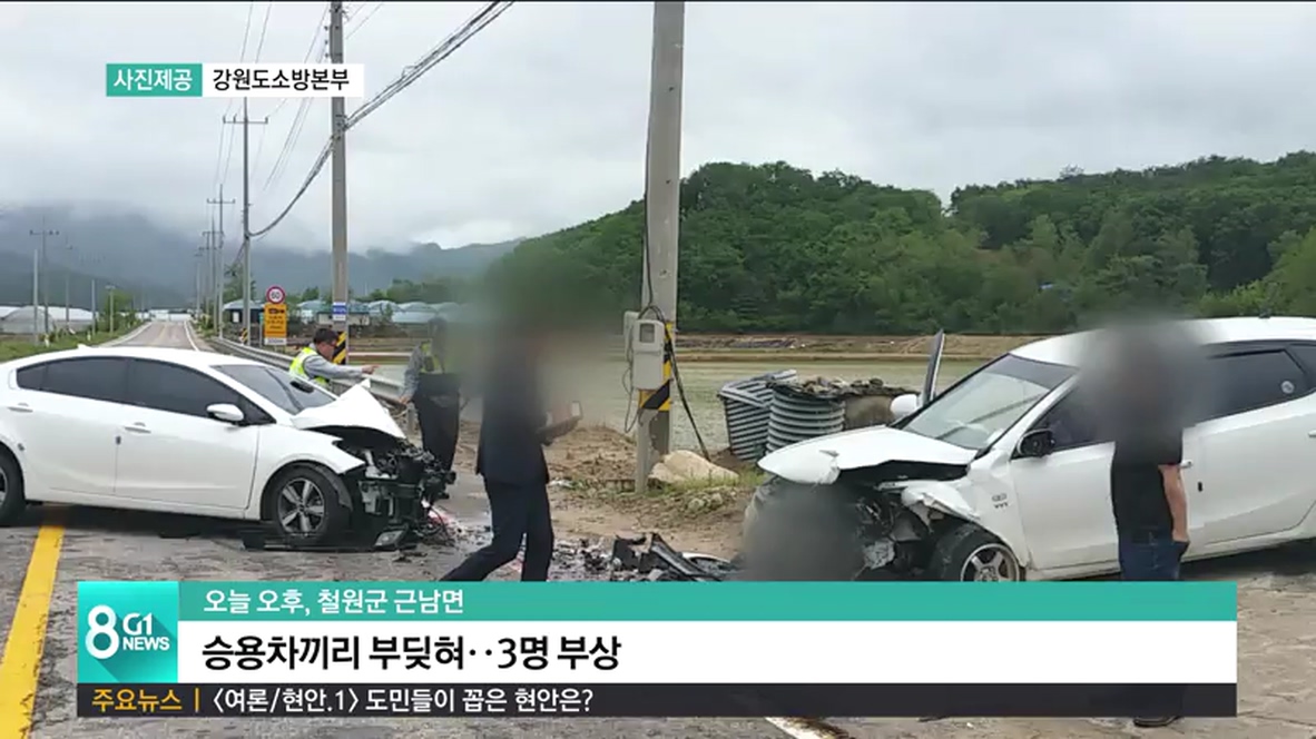 오늘 오후 12시 19분쯤, 철원군 근남면의 한 국도에서 K3 승용차와 I30 승용차가 부딪혔습니다.