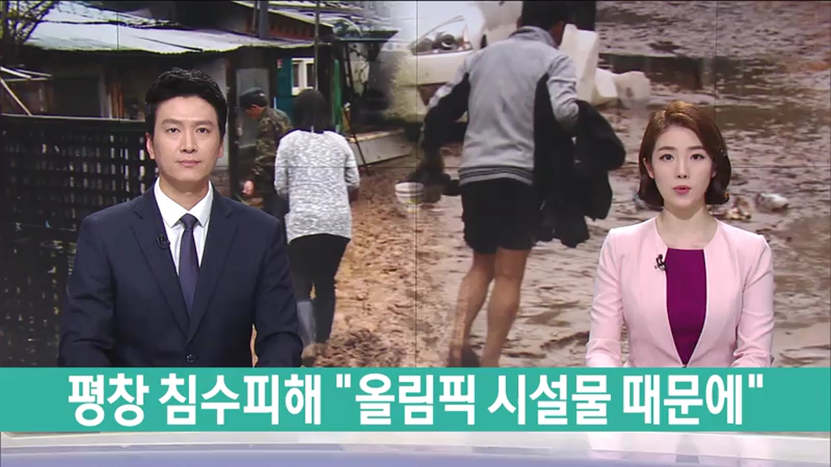 여) 특히 올림픽 개최지인 평창 횡계리에 침수 피해가 집중적으로 발생했는데, 주민들은 인근 하천에 적치된 시설물 때문이라는 주장을 제기하면서 인재 논란이 불거지고 있습니다.