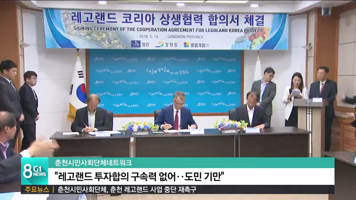 춘천시민사회단체네트워크는 성명을 내고, "강원도와 멀린의 합의서는 멀린의 책임이 아닌 협력강화에 방점이 찍혀 있다"며 "멀린이 구체적 투자계획을 밝힌 바가 없는 만큼 선거용 책임회피"라고 주장했습니다.