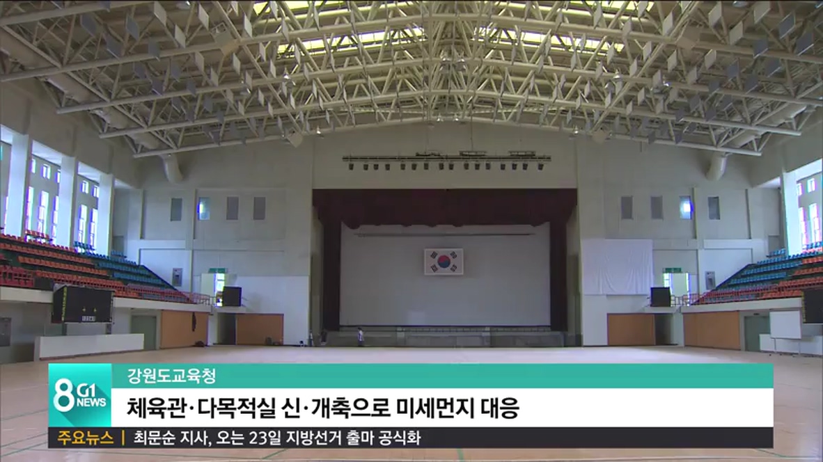 강원도교육청은 미세먼지로 인한 학생들의 체육수업 결손을 해소하고 야외활동을 보장하기 위해, 도내 42개교에 체육관과 다목적실을 신·개축하기로 했습니다.