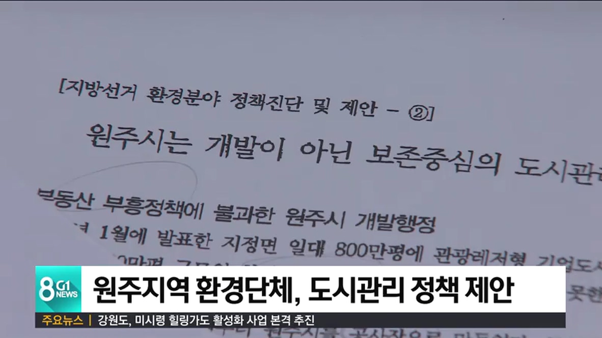 원주 환경단체들이 지방선거를 앞두고 환경정책을 제안한데 이어, 공원 조성과 개발 정책 의견서도 발표했습니다.