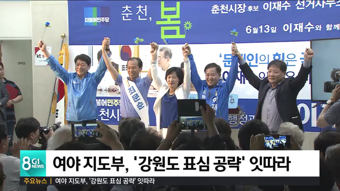더불어민주당 추미애 대표는 오늘, 이재수 춘천시장 후보의 선거사무소 개소식에 참석해, 최문순 도지사 후보를 비롯한 민주당 후보에 대한 도민들의 지지를 호소했습니다.