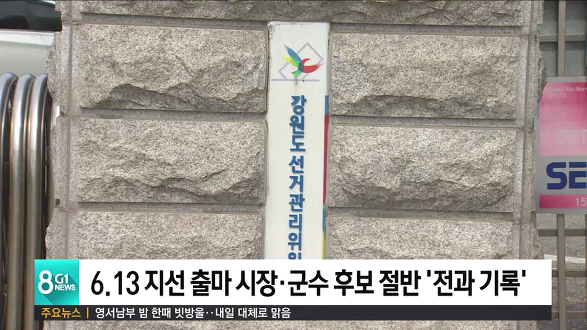 6.13 지방선거에 출마한 도내 자치단체장 후보 가운데, 절반이 전과 기록을 가지고 있는 것으로 나타났습니다.