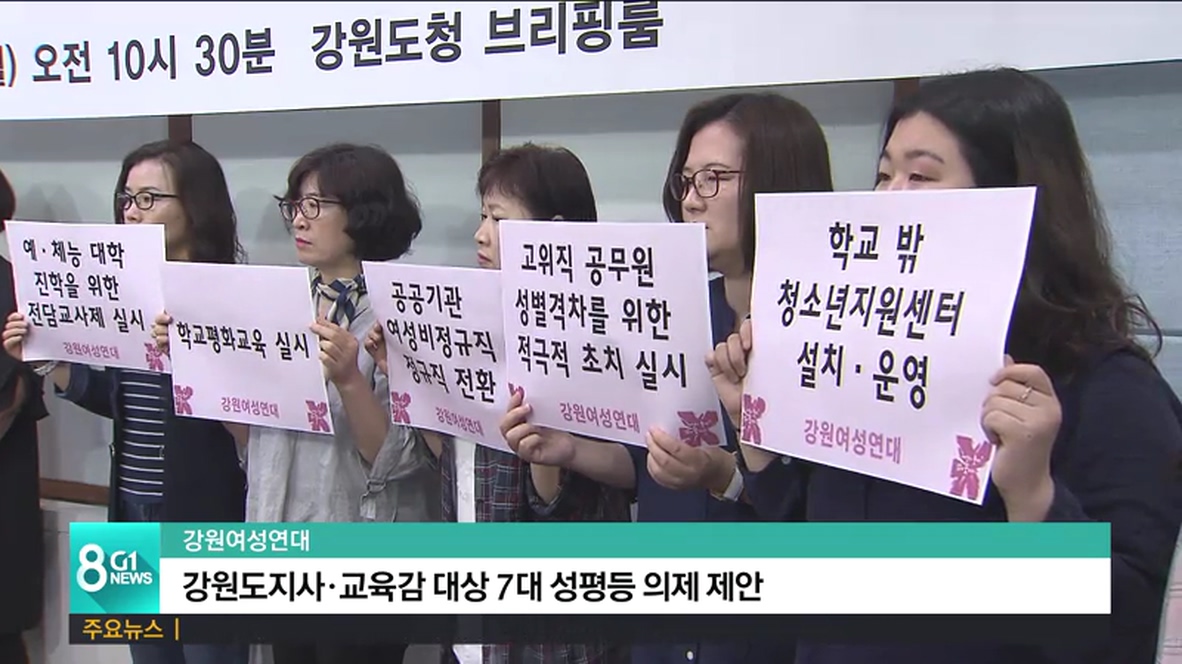 강원여성연대는 오늘(4일) 강원도청 본관 브리핑실에서 기자회견을 열고, 강원도지사와 교육감 후보들을 대상으로 한 강원여성 7대 성평등의제를 제안했습니다.
